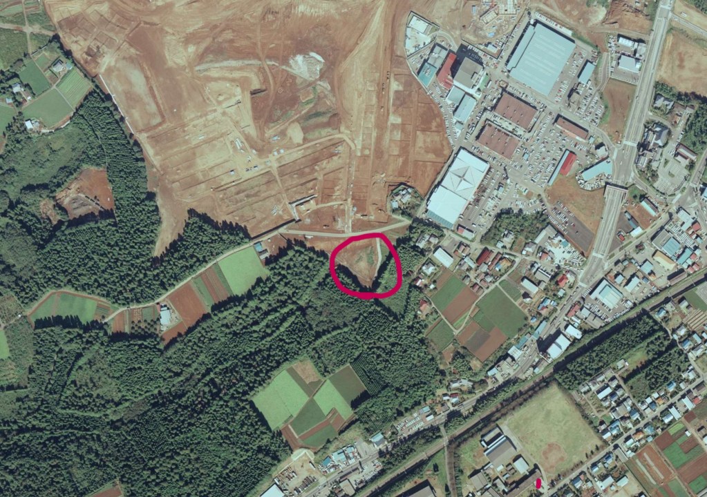 赤丸の場所がウエルシア成田公津の杜店となりもともとは畑だったようです。