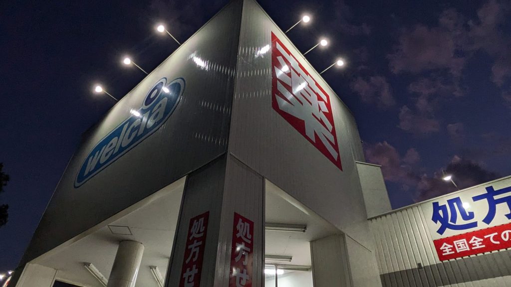 建物の中で縦に長く建築されているおかげで車で横を通っても一瞬で”ウエルシア” “薬”を認識させます。