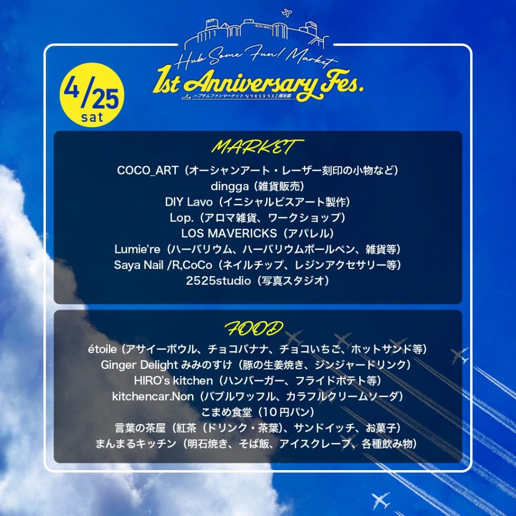 以上が4/25,26にイオンモール成田、なりそらテラスにて開催される